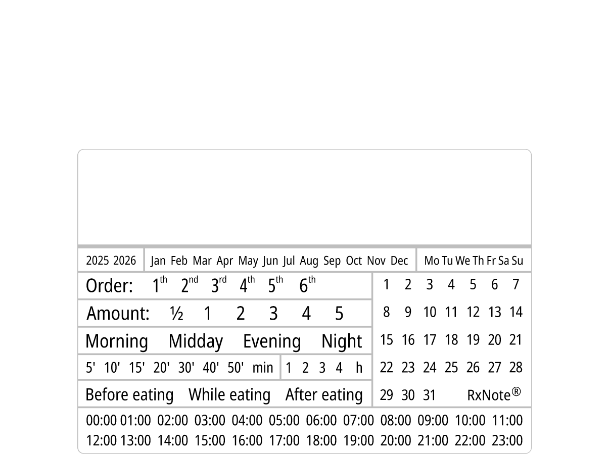 The pharmacist notes the instructions for taking medication in the RxNote Pharmaceutical Calendar. With these notes, the pharmacist indicates: