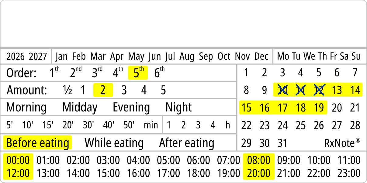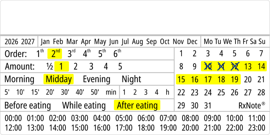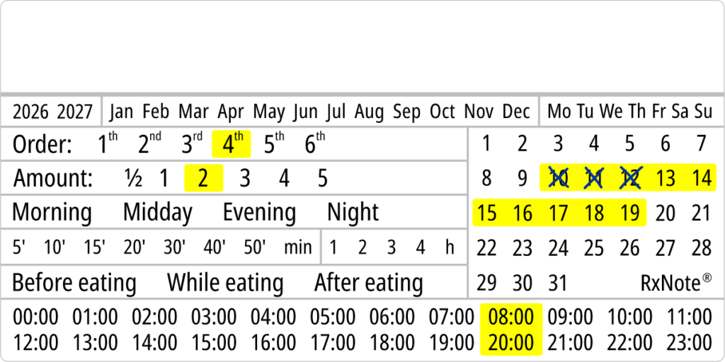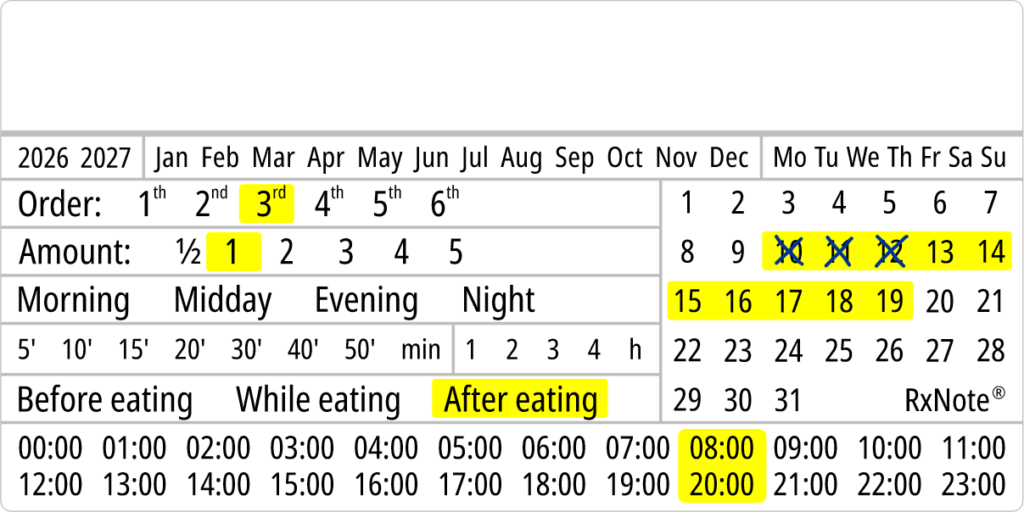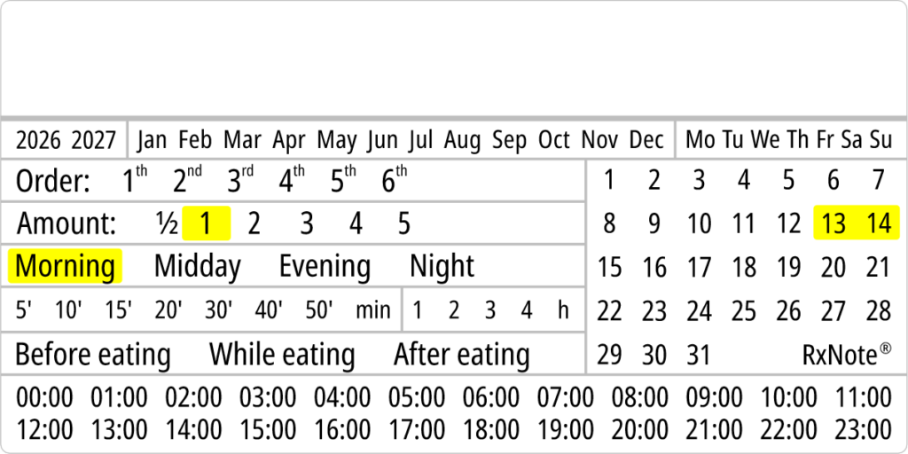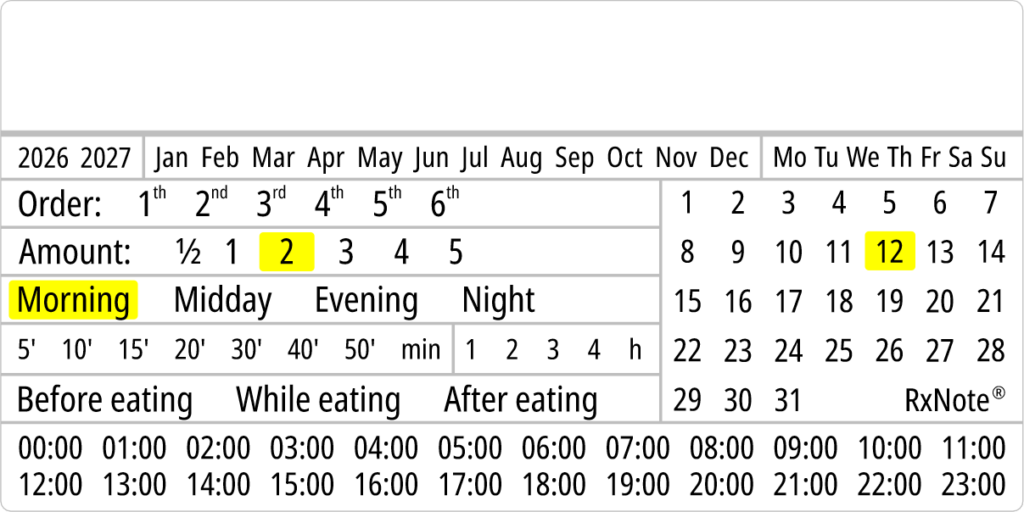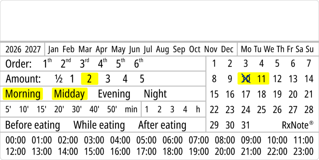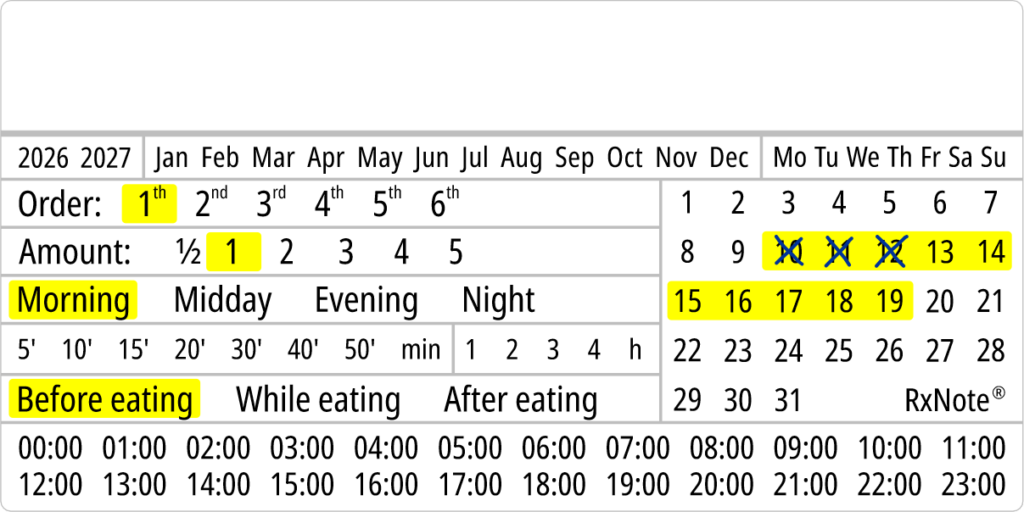 The RxNote Pharmaceutical Calendar is an innovative and simple way to guide and ensure adherence to medication.