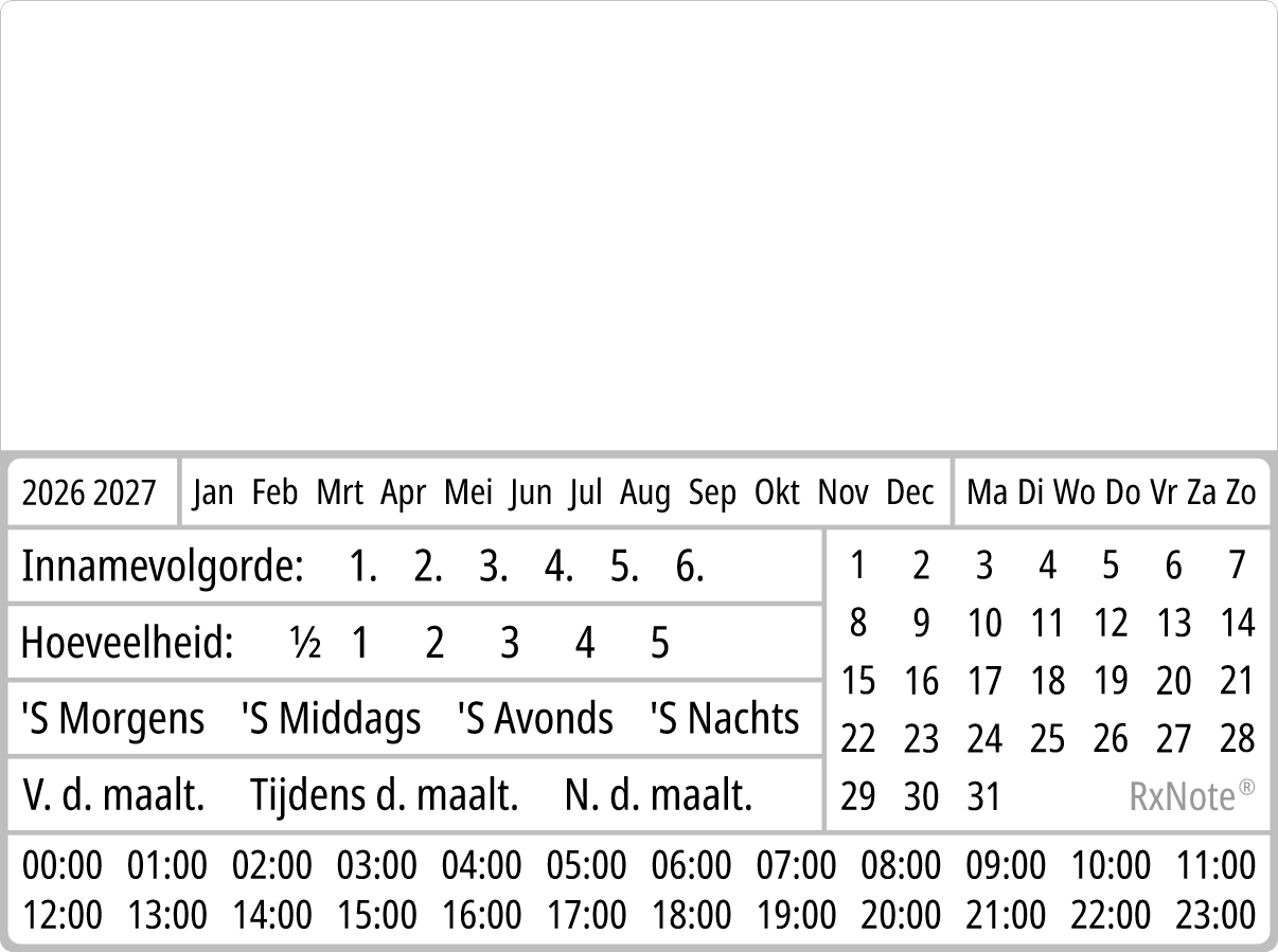 Het zelfklevend etiket met RxNote Farmaceutische Kalender is een innovatieve, eenvoudige en praktische manier om medicatie aan te geven en bij te houden, wat de apotheker van dienst is en de patiënt helpt.